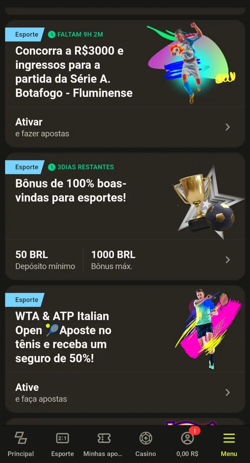 Isso significa que é possível reivindicar o seu bônus de boas-vindas de 100% do valor do 1º depósito até R$ 1000.